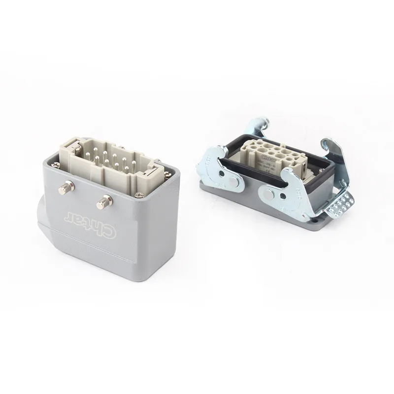 Цей 10-контактний з’єднувач CHTAR AG для важких умов розроблено за модульним принципом. Він складається з корпусу гнізда, який може вмістити різні конфігурації вставок з 10 номерами гніздових або чоловічих контактів. Він виготовлений з подвійного блокувального важеля для захисту внутрішніх роз’ємів.