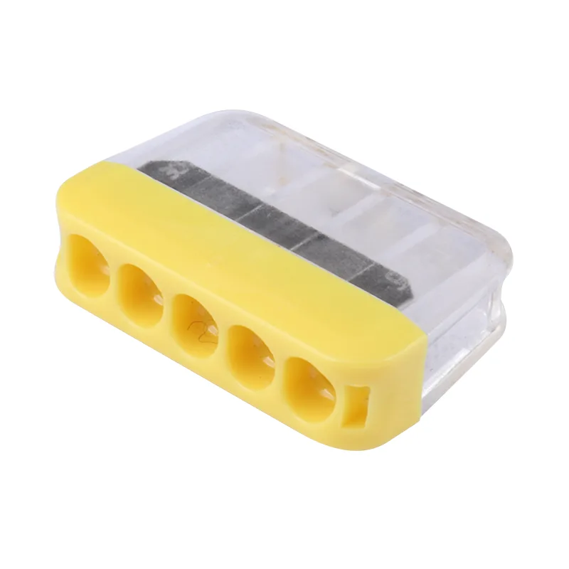 CHTAR 2P 3P 4P 5P 6P 8P Швидкі з’єднувачі без важелів виготовлені з матеріалу корпусу ПК класу UL94 V0, провідник виготовлений з міді T2 з лудженим покриттям, а пружина виготовлена ​​з S301. Його можна підключити за допомогою жорстких проводів 0,5-2,5 мм2, він забезпечує різну кількість отворів для вибору різної кількості проводів. Його можна добре підключити від 2 до 8 проводів. Ми можемо зробити інший колір або корпус на вибір клієнтів.
