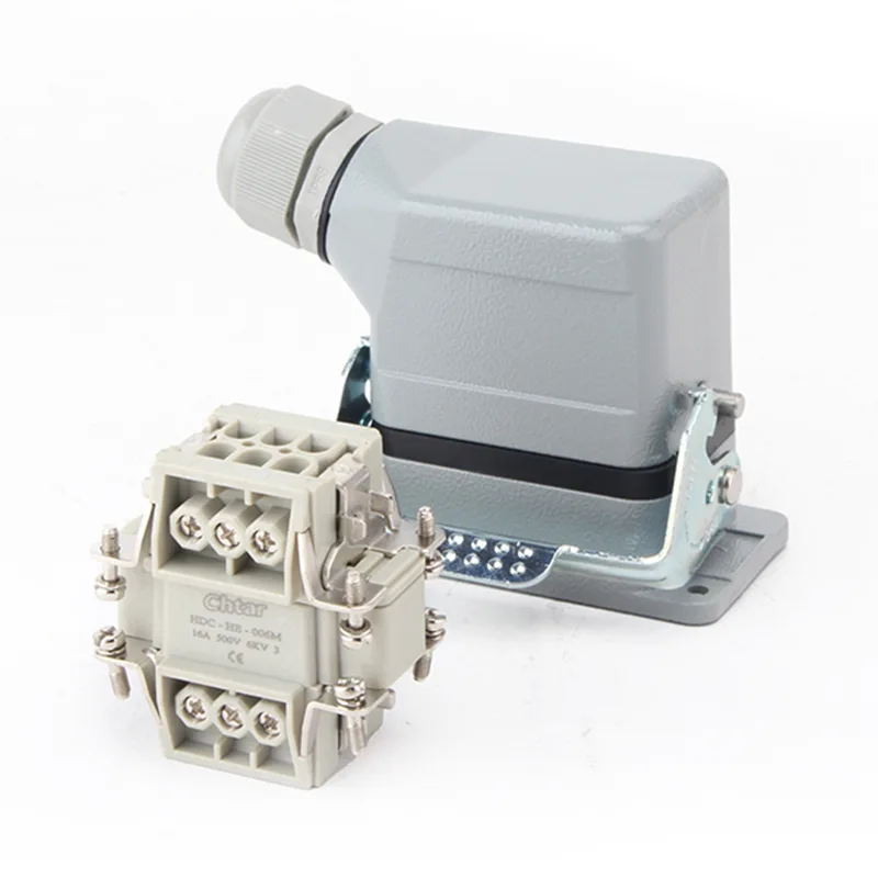 Ці 6-контактні роз’єми CHTAR AG для важких навантажень широко використовуються з HE HD HEE, HDD. Це базова та жіноча частина корпусу важких конекторів. Він виготовлений з алюмінію та розроблений як одна пряжка. Зручний тип клемної колодки для важких умов експлуатації.