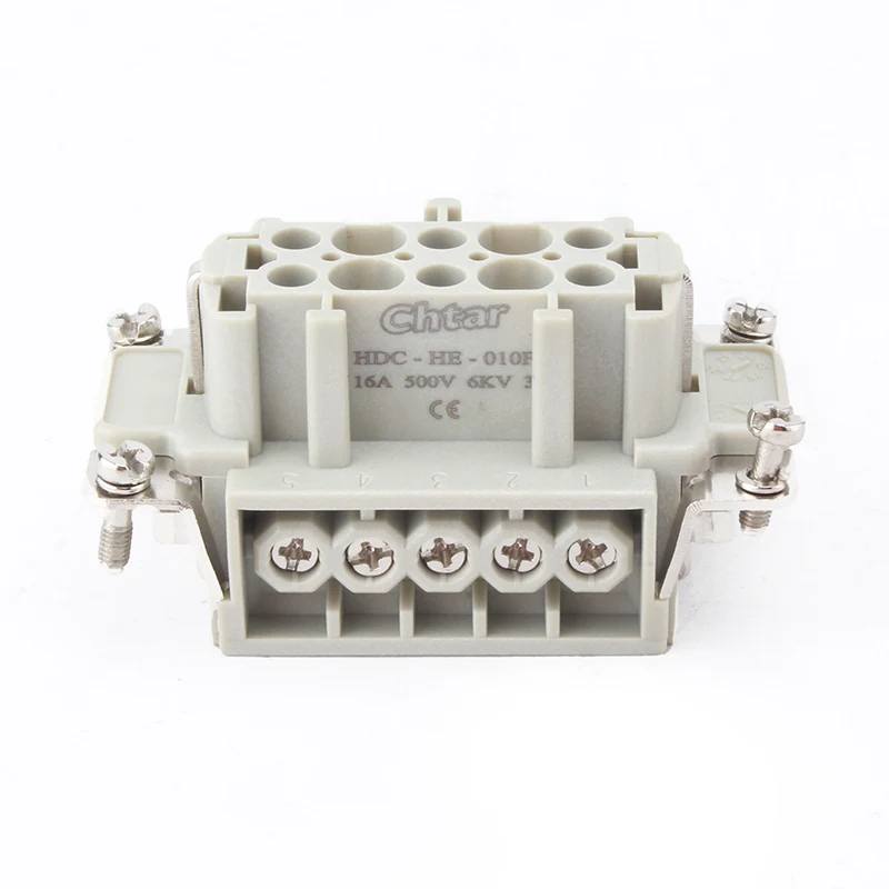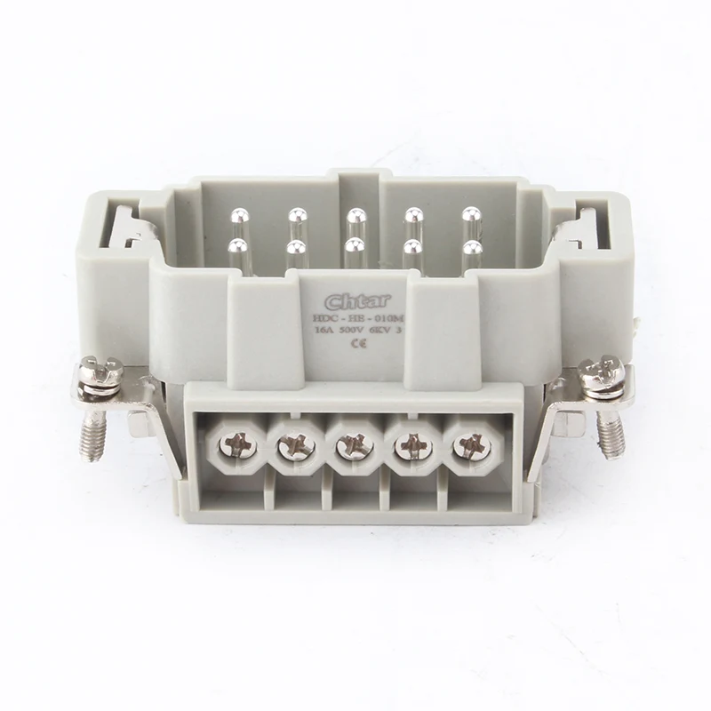 Міцний 10-контактний з’єднувач M/F для важких навантажень CHTAR використовується в поєднанні з корпусом H10B роз’єму для важких навантажень. Він має 10 контактів і з’єднаний 10 проводами. Вони виготовлені з високоміцного ПК і мають латунні посріблені шпильки всередині. Ми з нетерпінням чекаємо можливості стати вашим надійним довгостроковим партнером у Китаї.