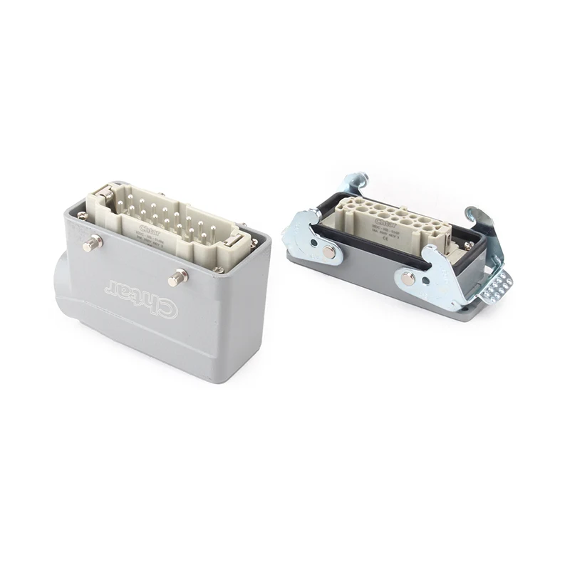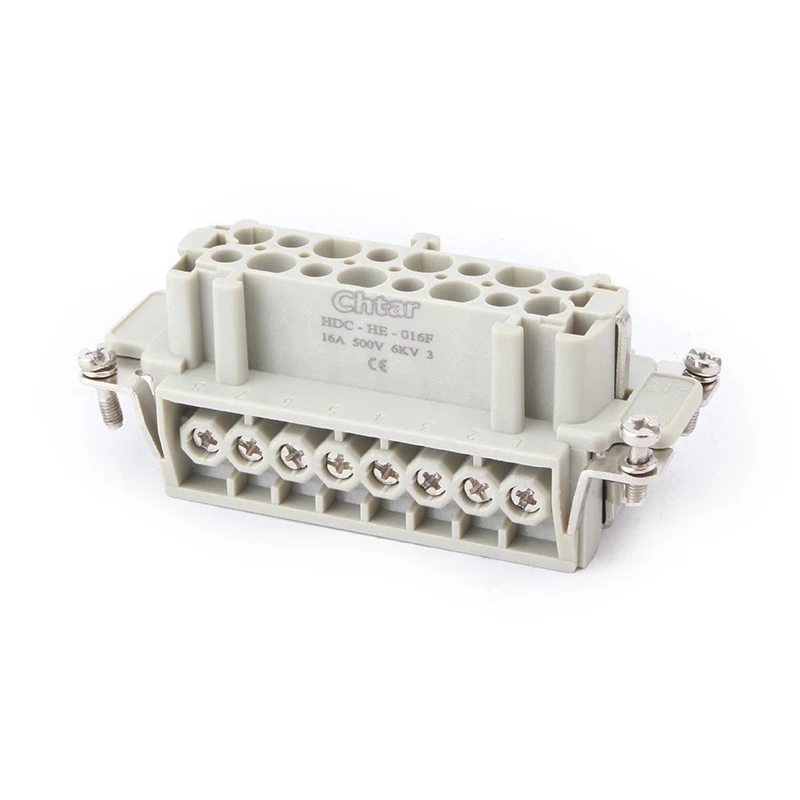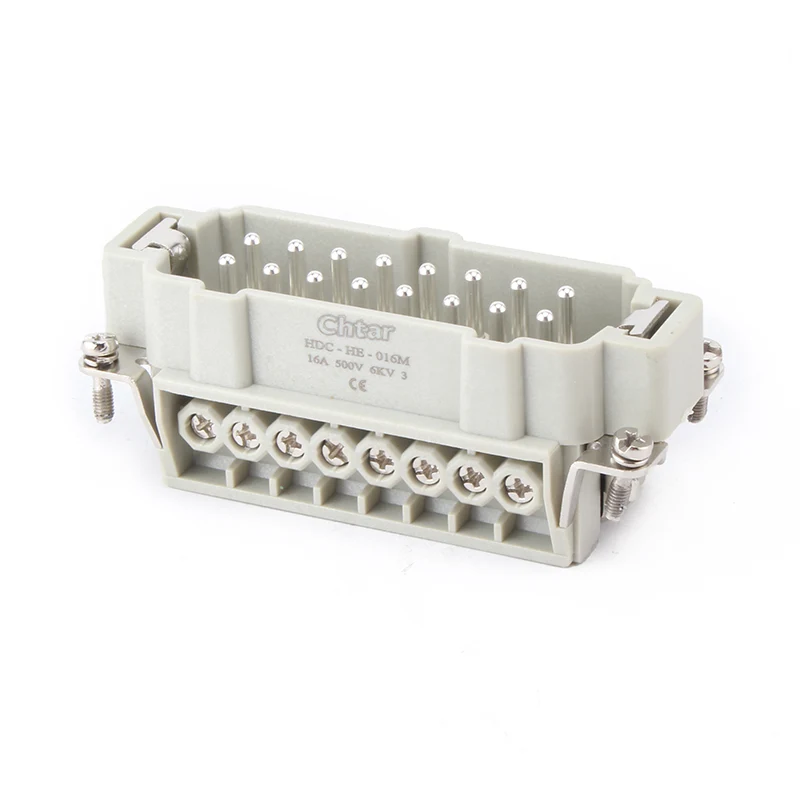 M/F 16-контактні вставні з’єднувачі для важких умов роботи – це вставні частини, які встановлюються в алюмінієвий корпус з’єднувачів для важких умов експлуатації HDC-HE-016. З’єднувачі для надміцних вставок виготовлені з ПК і латунних штирів. Латунні шпильки CHTAR посріблені. Це чоловічі та жіночі частини, які з’єднуються разом. Його також потрібно зібрати в корпусну частину, щоб забезпечити захист IP65.