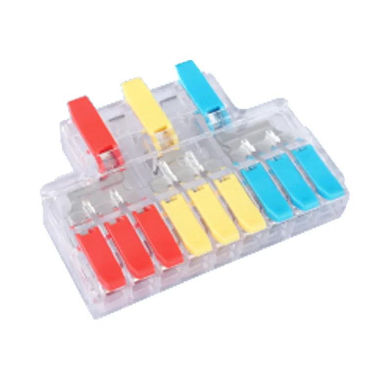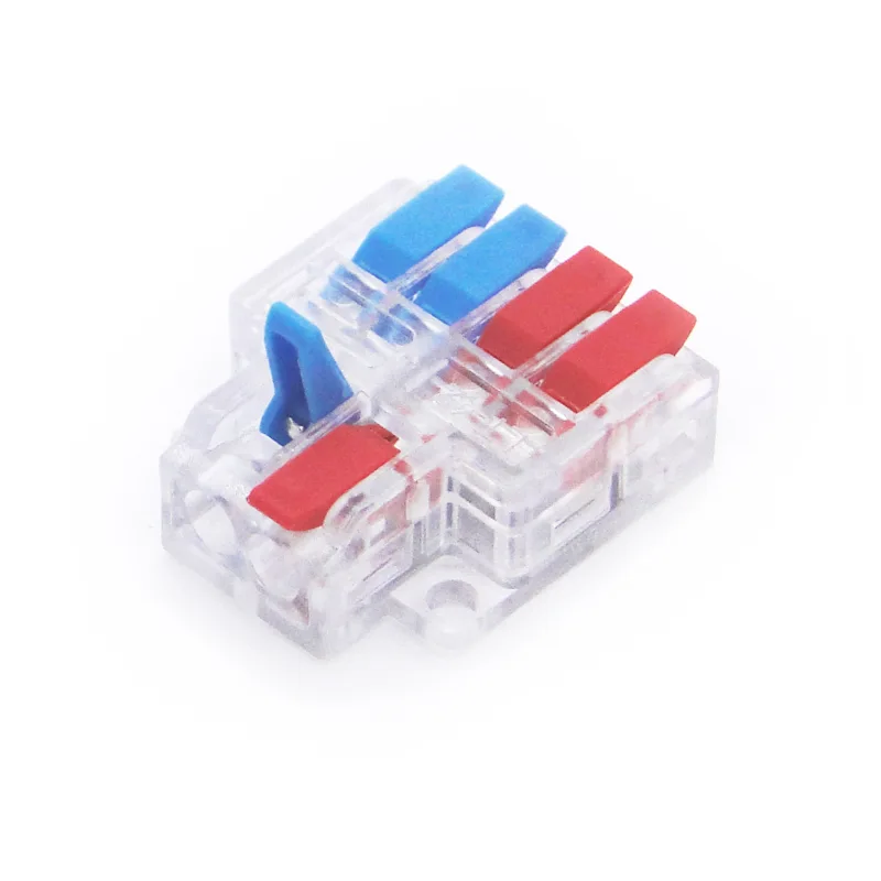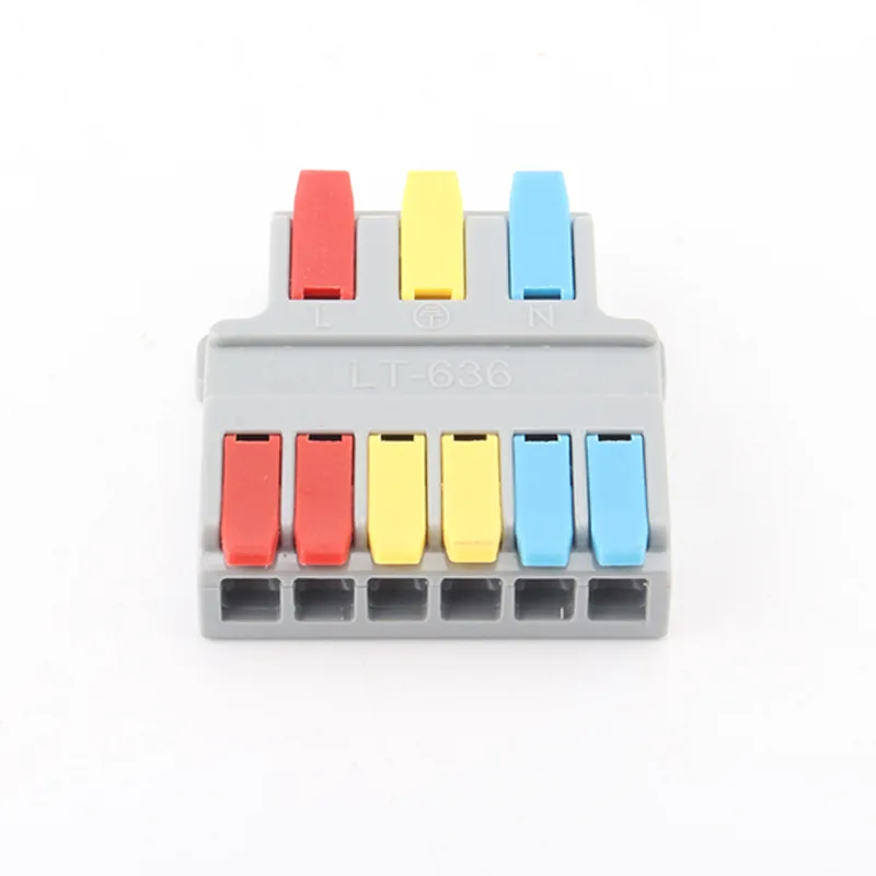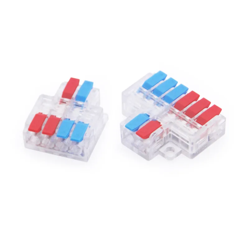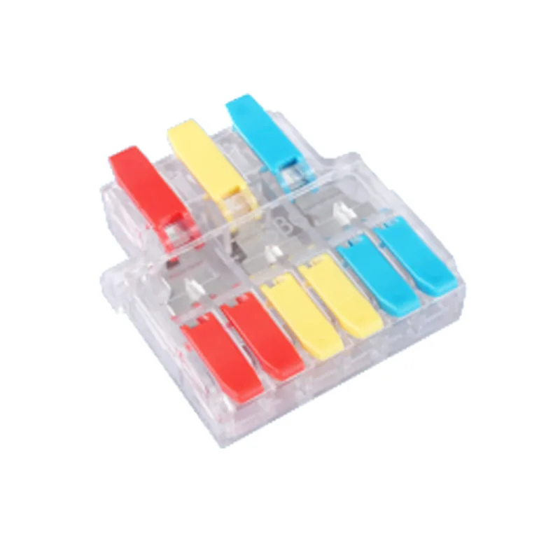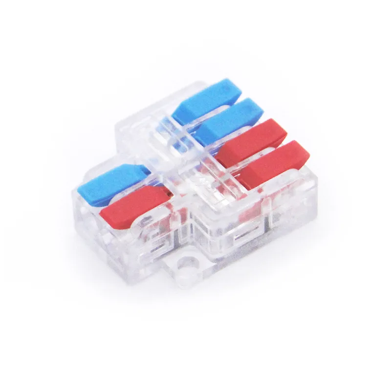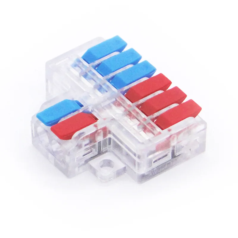 Швидкі з’єднувачі для з’єднувальних дротів «два входи і чотири виходи» призначені для кабелів великого калібру, підтримуючи з’єднання до 6 квадратних міліметрів. Витримує струм до 35 ампер. Вони використовують ручки різних кольорів, щоб чітко розрізняти маршрути проводки.